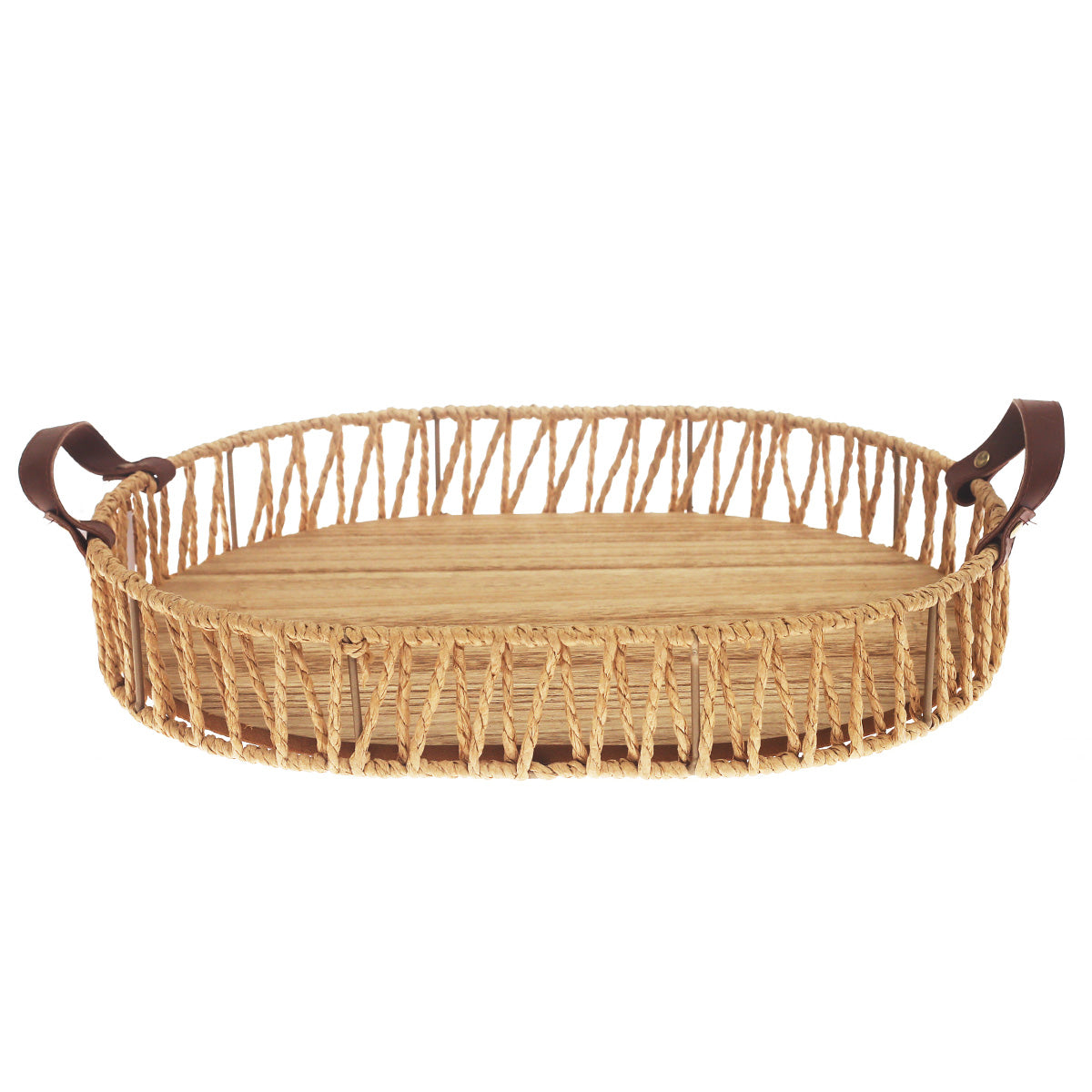This tray is handcrafted using natural materials; slight variations in color, weave, and finish may occur and are part of its unique charm. Decorative items shown are not included.