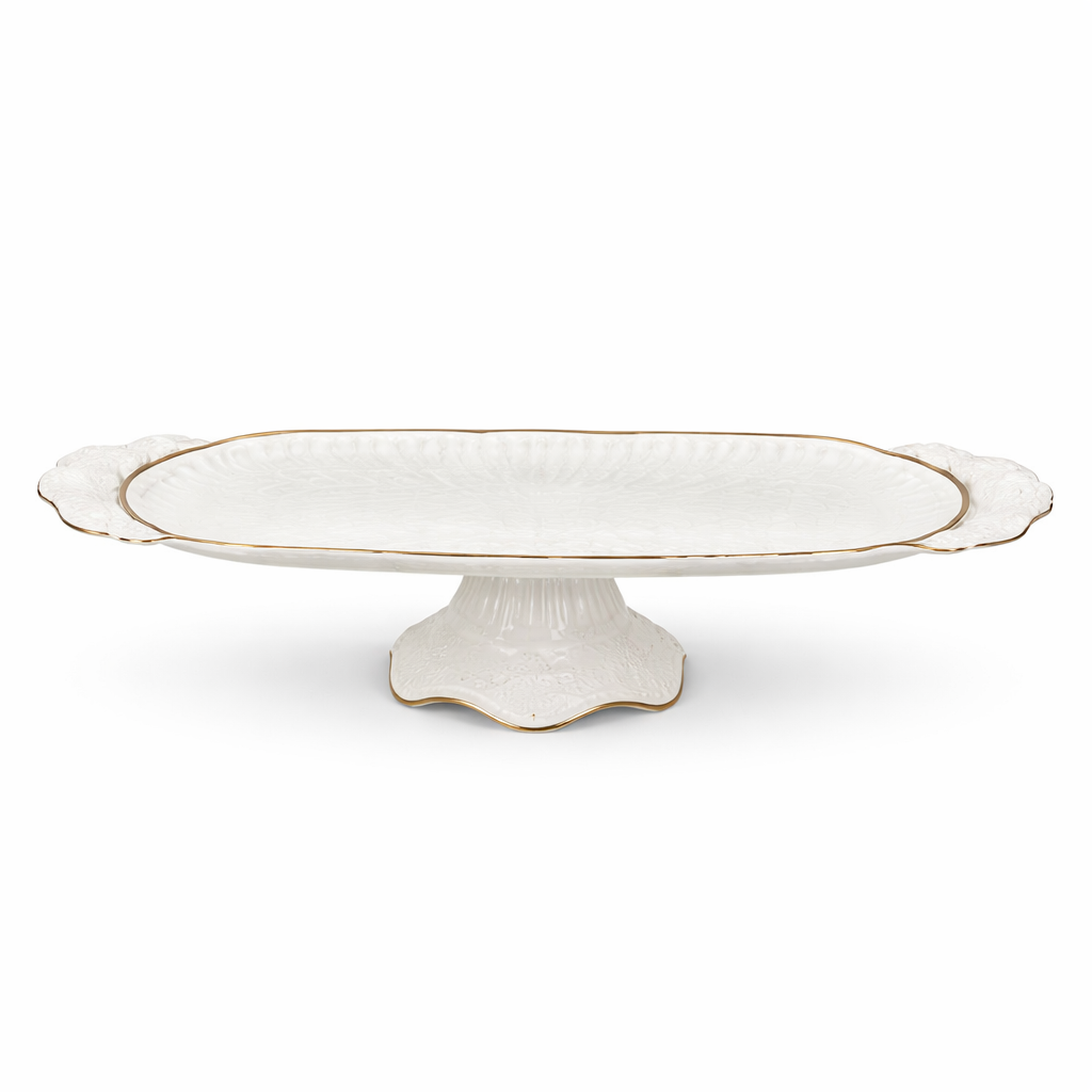 The Large Snack Dish is a statement serving piece designed to bring elegance and refinement to your table. Crafted in classic white porcelain and enhanced with delicate gold trim, this elongated pedestal dish is perfect for presenting snacks, desserts, fruits, or appetizers in a luxurious way. The raised base and sculpted handles add both functionality and visual appeal, making it ideal for formal dining, festive occasions, and stylish home entertaining.