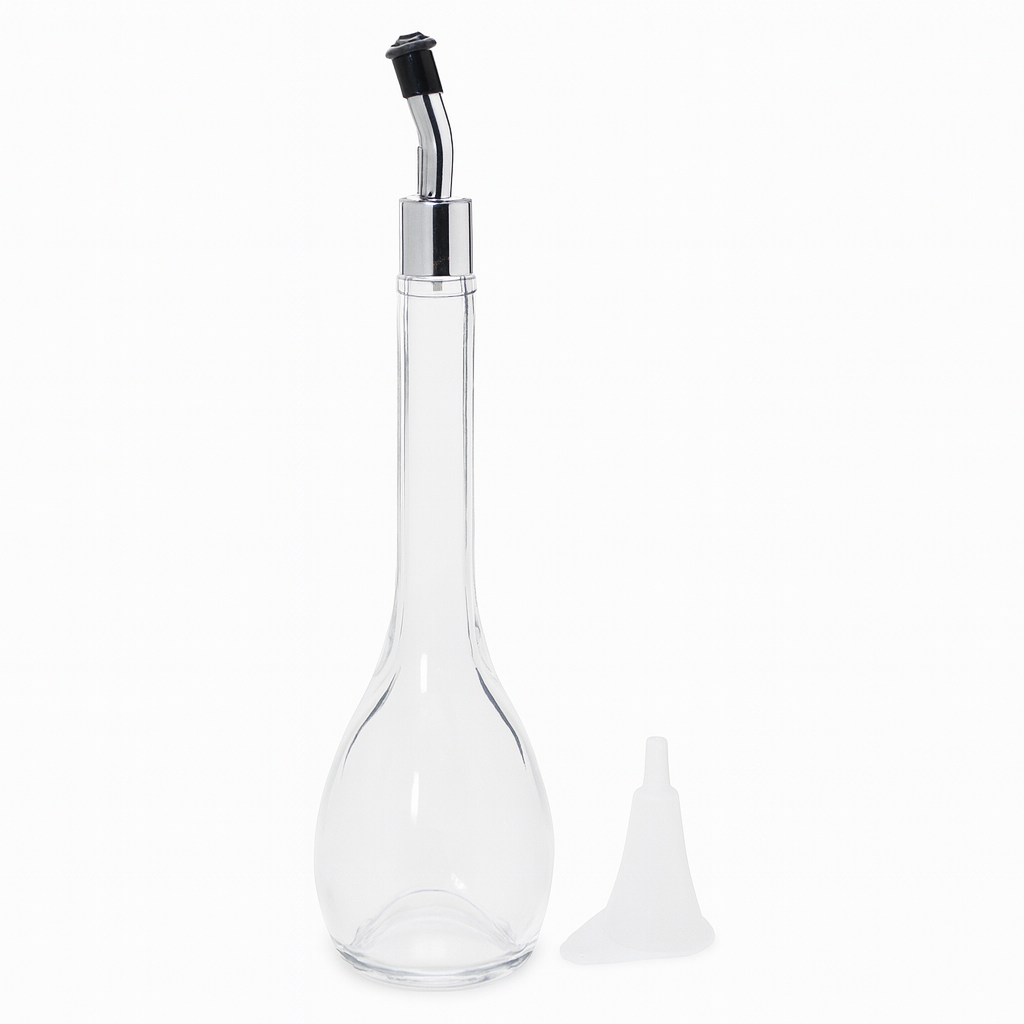 This Long Shape Oil Bottle in a sleek snail-inspired silhouette features a tall, elegant neck and a clear glass body that beautifully displays your oil, vinegar, or infused blends. Designed for precision pouring, it comes with a metal spout fitted with a secure cap to minimize drips and maintain freshness. The set also includes a small funnel for easy, mess-free refilling. Perfect for everyday cooking, tabletop serving, and enhancing the look of modern kitchens.
