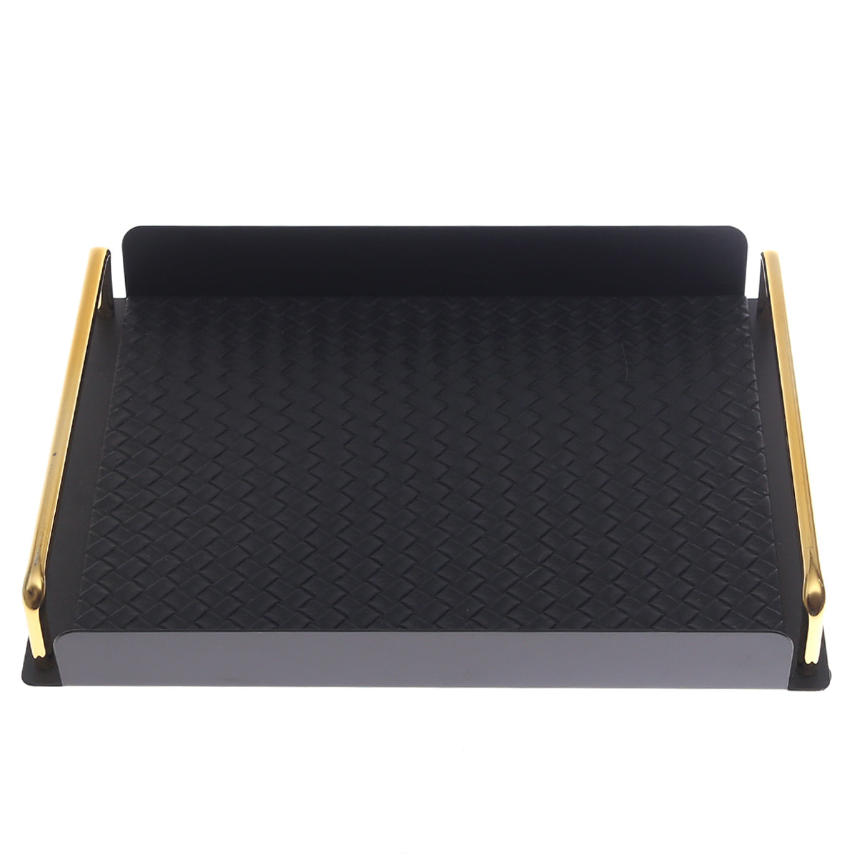 Bring contemporary sophistication to your space with this Luxury Small Leather Tray (Model 6-2). Designed with a black textured surface and accented by sleek gold metal handles, this tray is the perfect balance of style and function. Ideal for serving beverages, organizing essentials, or decorating your tabletop, it’s a versatile accessory that enhances both modern and classic interiors.