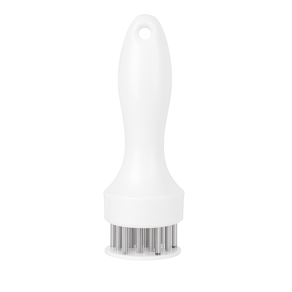 This is a kitchen tool only. Always handle with care due to sharp stainless steel needles. Meat shown in images is for demonstration purposes and is not included.