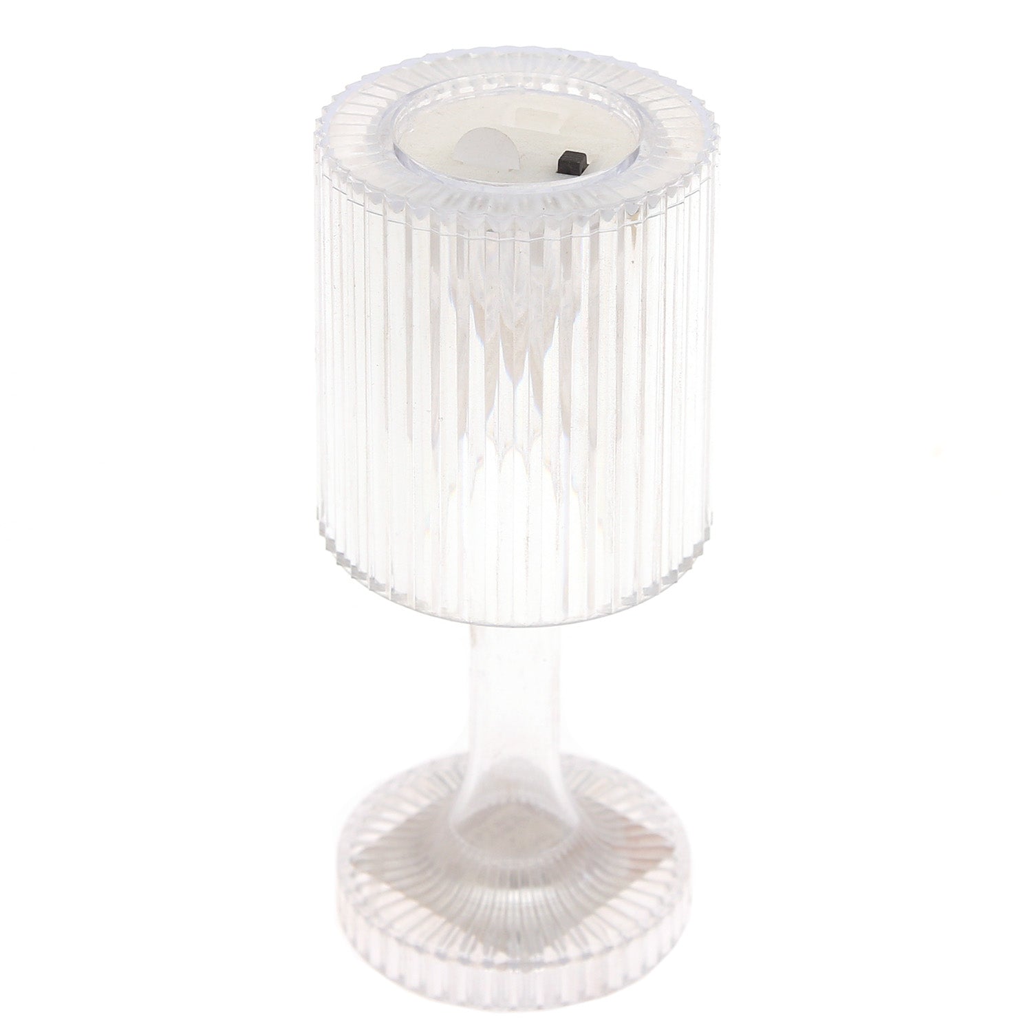 Brighten your space with refined simplicity using the Mini LED Table Lamp – Transparent (FY-04). Standing at 5.5 inches, this elegant lamp features a crystal-style transparent body with vertical ribbed detailing that beautifully refracts light, creating a soft and enchanting glow. Perfect for modern, minimalist, chic, and ambient décor settings, it enhances bedside tables, dining setups, workspaces, and decorative displays with a touch of sophistication.
