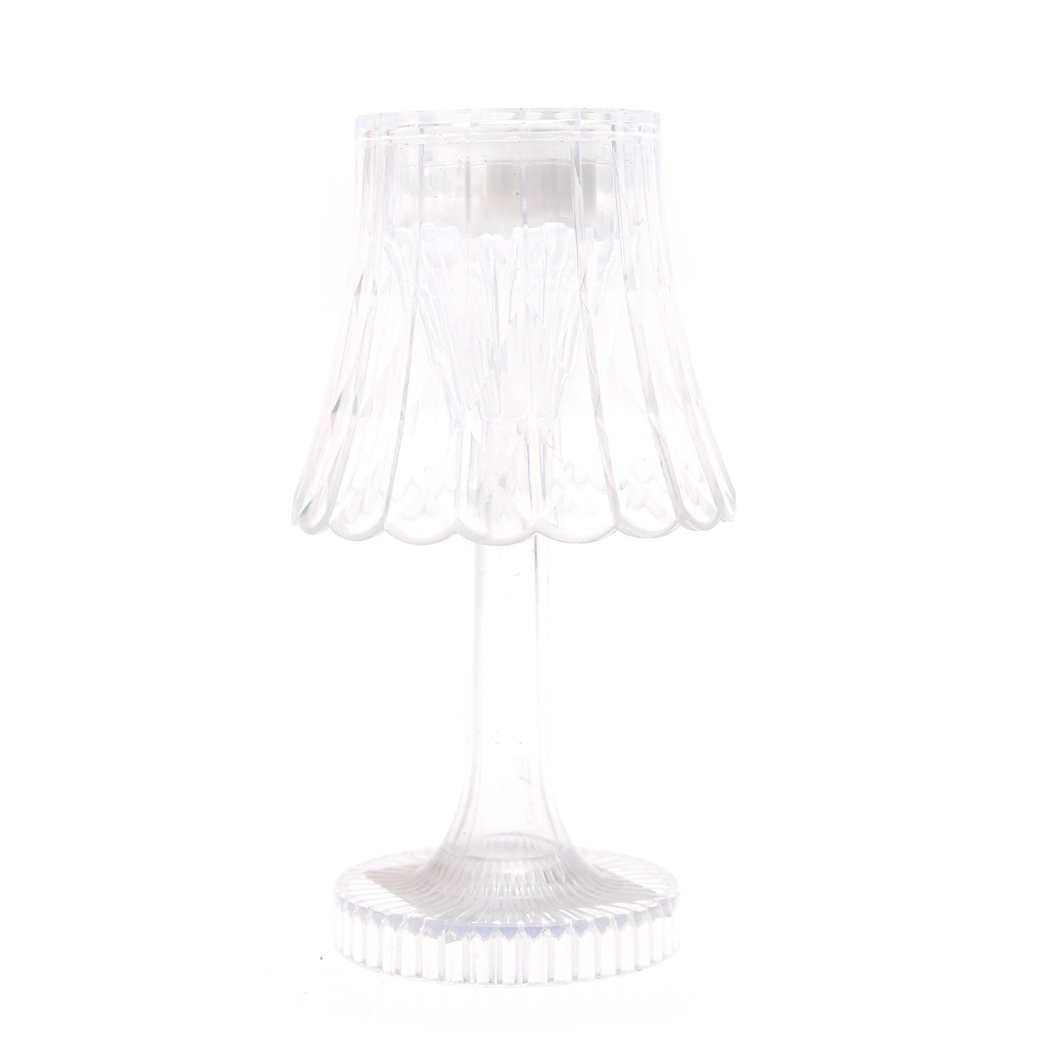 Illuminate your space with timeless elegance using the Mini LED Table Lamp – Transparent (FY-03). Featuring a beautifully sculpted lampshade with a scalloped, crystal-inspired design, this 6-inch lamp refracts light gracefully to create a warm, ambient glow. Its sleek stem and ribbed base add a touch of sophistication, making it the perfect accent for modern, chic, and minimalist décor styles.