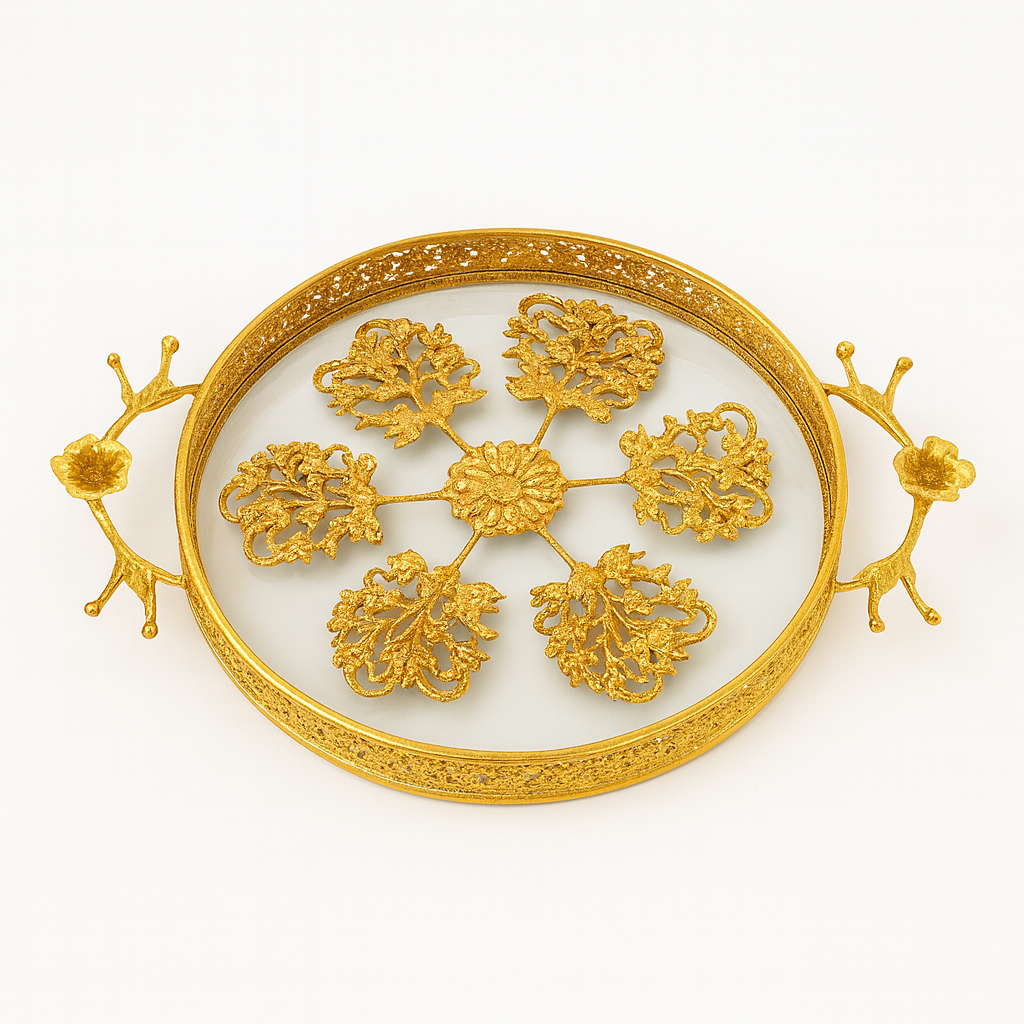 Elegant 2-piece mirror tray set with a luxurious golden finish, perfect for serving, décor, and festive gifting. Adds a classy touch to any space.