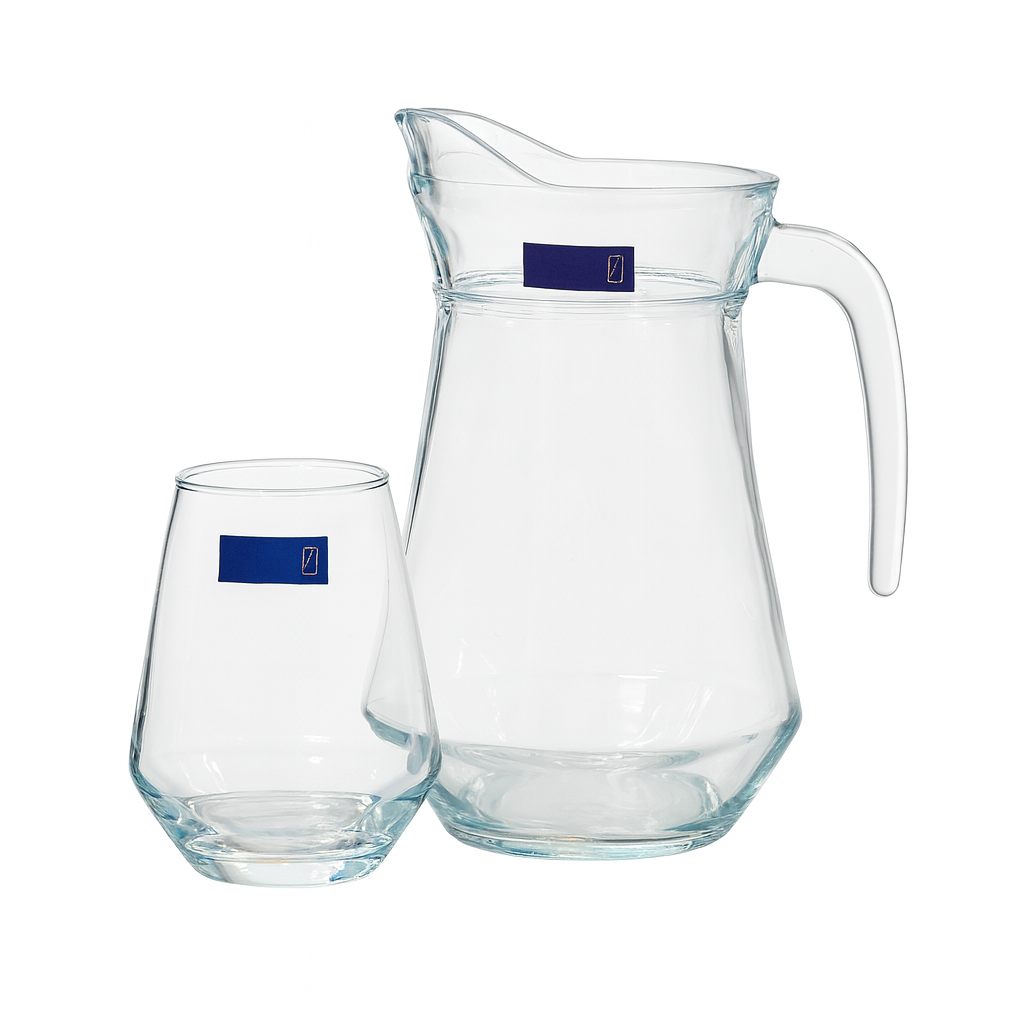 Upgrade your serveware with this elegant 7-piece Modern Clear Water Set, designed to bring simplicity and sophistication to any table. The uniquely shaped 1.4 L jug features smooth contours, a sturdy handle, and a clean-pour spout for effortless serving. Paired with six 340 mL glasses showcasing a rounded, modern silhouette, this set is perfect for daily hydration, family meals, guest entertaining, or office use. Its crystal-clear finish complements all décor styles, making it both practical and visually appealing.