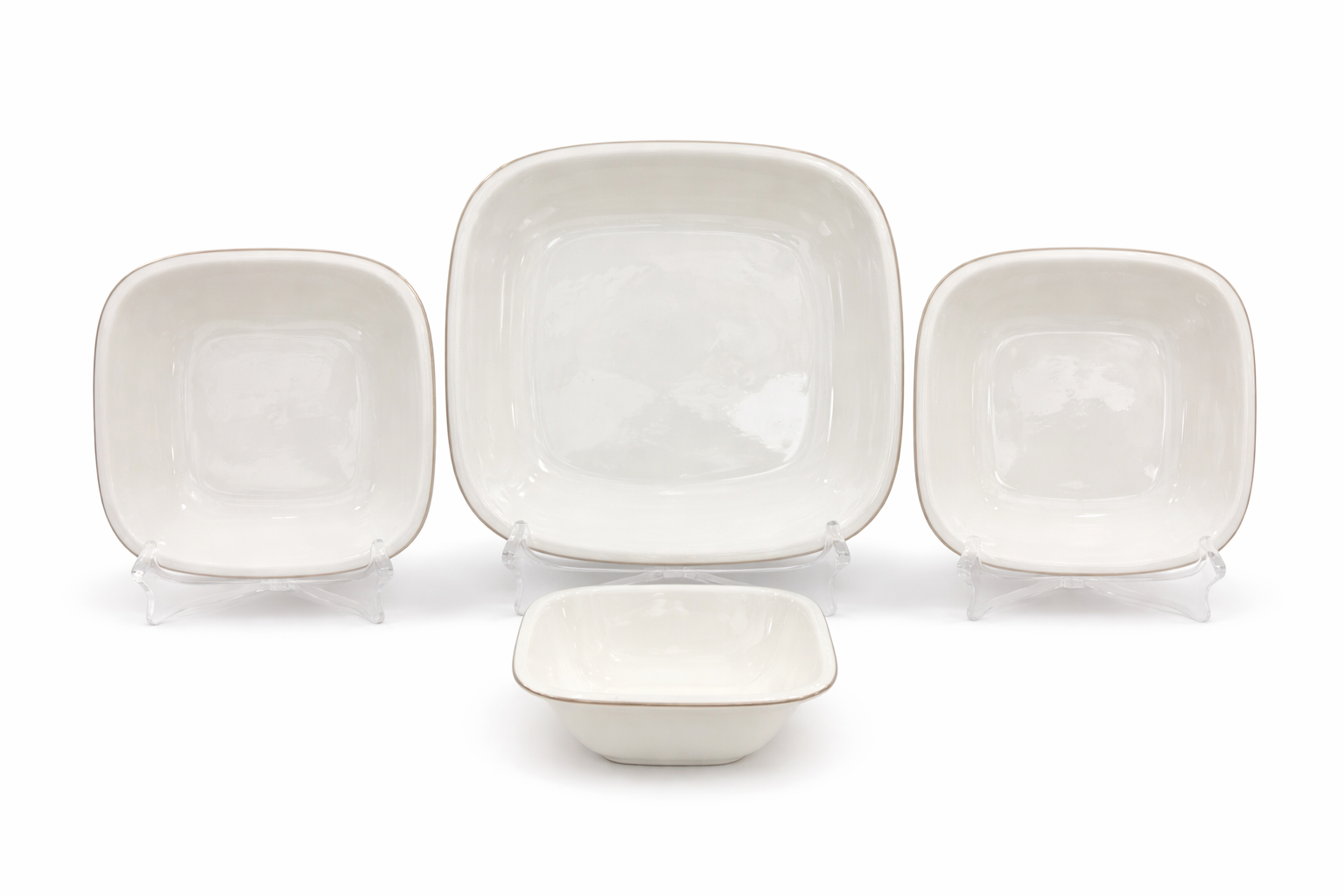 24-piece complete dinner set for 6 persons, including a coordinated selection of square plates and bowls for full-course dining.