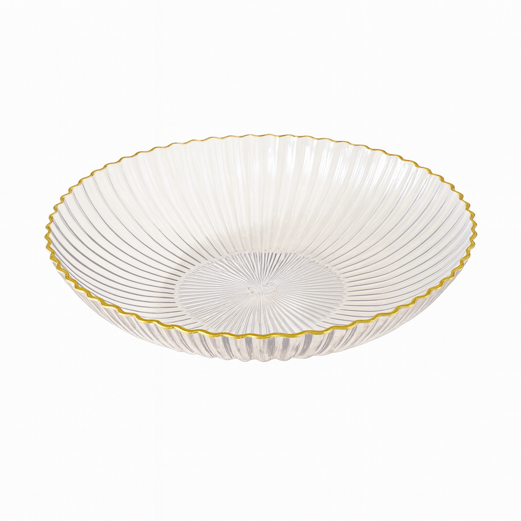 Elegant and versatile, this Small Multipurpose Acrylic Bowl features a ribbed texture with a gold-rim accent for a refined look. Perfect for serving fruits, salads, snacks, or desserts, it complements both everyday dining and special occasions.