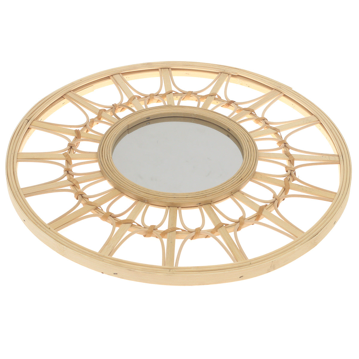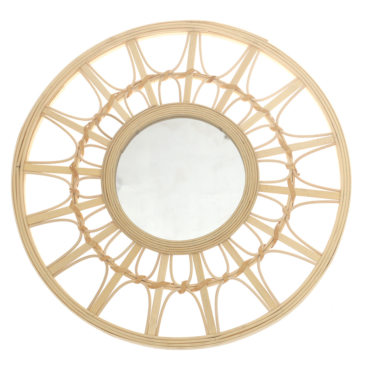 Add an airy, organic accent to your walls with this Natural Round Mirror, thoughtfully crafted with a handwoven bamboo frame. The intricate open-weave design radiates outward from the center, creating a light and sculptural look that enhances both modern and natural interiors. With its generous 17.5 x 17.5 inch size, this mirror works beautifully as a statement piece in living rooms, bedrooms, entryways, or dining spaces, bringing warmth, depth, and artisanal character to your décor.