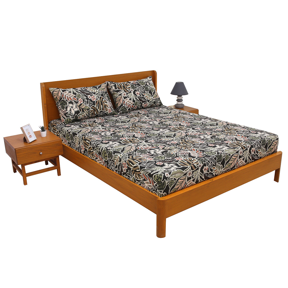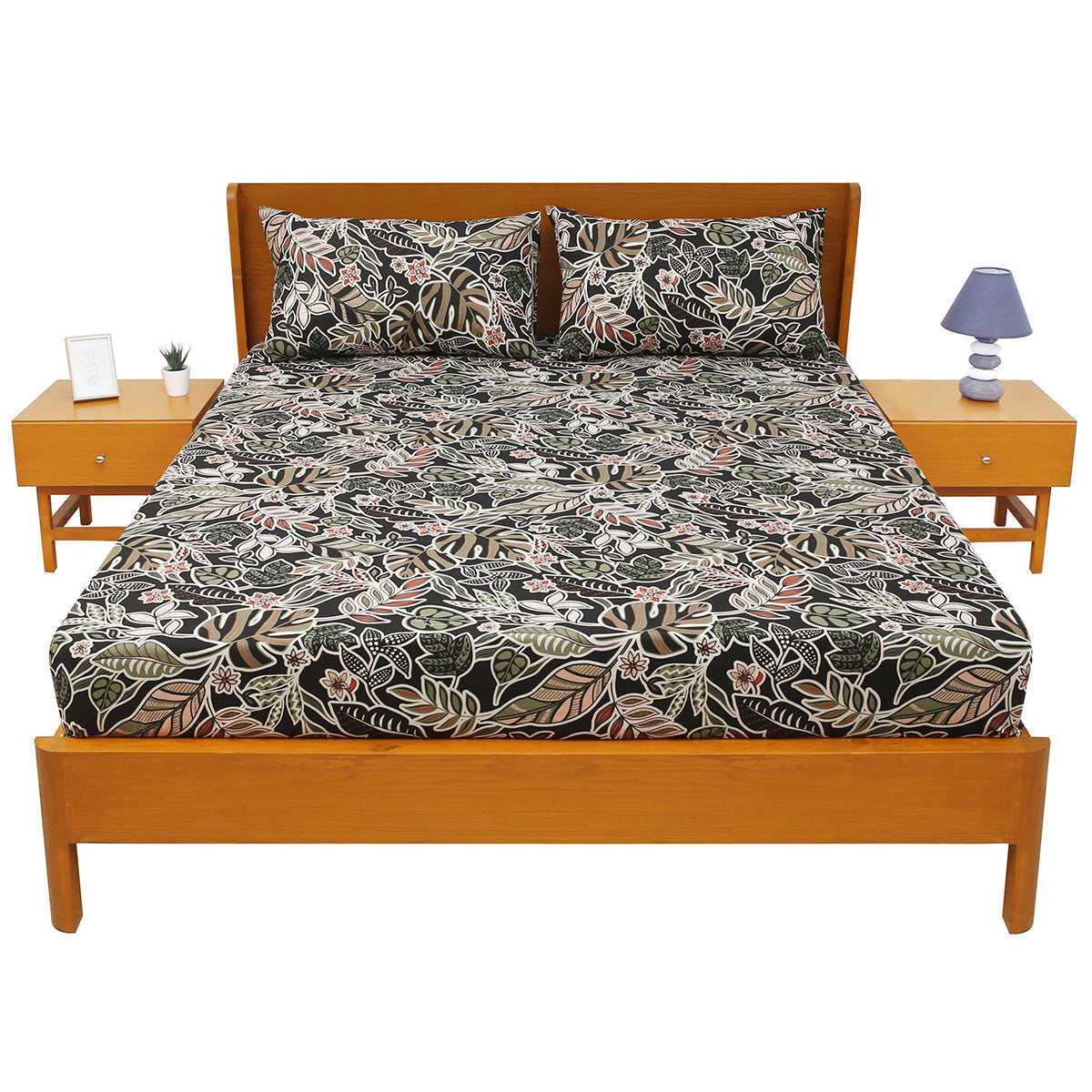 Enhance your bedroom décor with this stylish Palm Pattern Double Bed Sheet, featuring an elegant tropical leaf print in earthy tones on a deep background. Made from soft, breathable cotton, it combines comfort and sophistication for a restful night’s sleep and a chic, modern look.