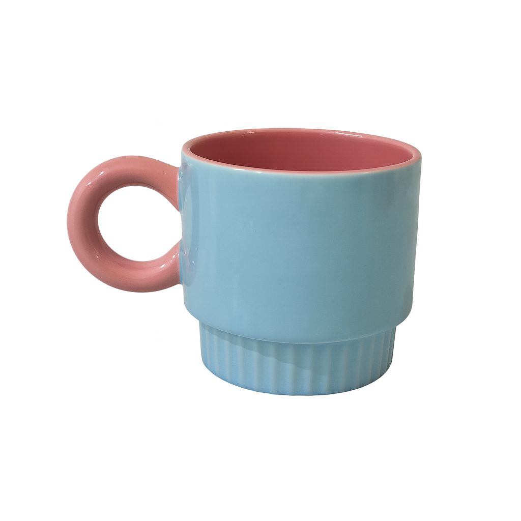 Brighten your mornings with the Pastel Pop Ceramic Mug, a playful blend of retro charm and modern design. Available in four cheerful colorways — blue, green, pink, and yellow — each mug features a glossy dual-tone glaze with a ribbed base and a round handle for a comfortable grip. Perfect for coffee, tea, or hot chocolate, this mug adds a burst of color and fun to any kitchen or workspace.