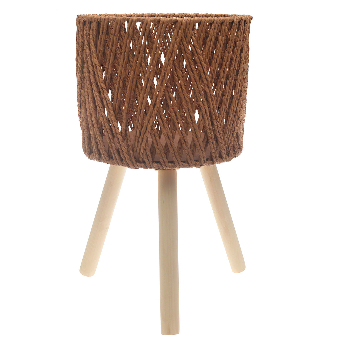 Add a touch of natural elegance to your home with this Medium Brown Woven Planter. Featuring a finely handwoven basket design paired with a minimalist wooden tripod stand, this planter brings warmth, texture, and modern style to any space. Its compact yet eye-catching size makes it ideal for shelves, corners, side tables, or office décor. Whether styled with indoor plants or faux greenery, this planter effortlessly enhances boho, contemporary, and rustic interiors.