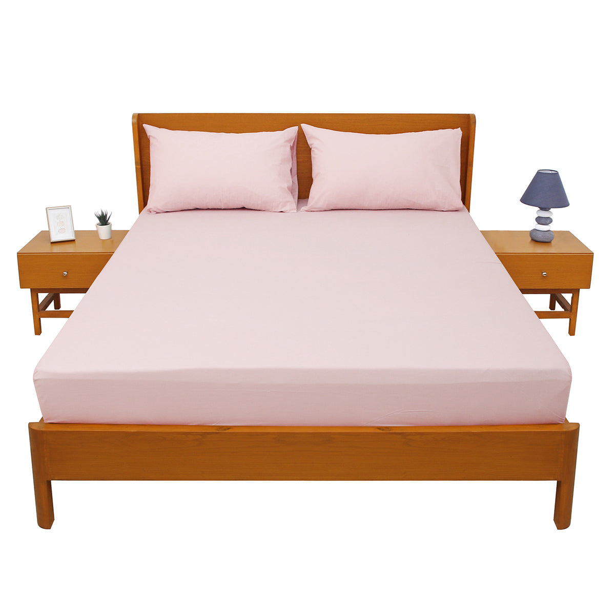 Create a cozy and inviting atmosphere with this Premium Light Pink Dyed Double Bed Sheet (96x102 inches). The gentle blush hue adds a touch of romance and freshness to your bedroom décor, making it perfect for both modern and classic interiors. Crafted from soft, breathable cotton, this bedsheet promises exceptional comfort, smooth texture, and long-lasting quality for everyday luxury.