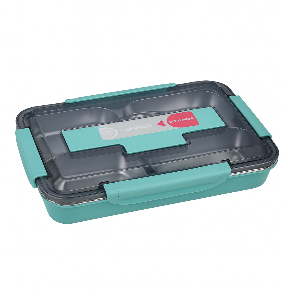Upgrade your mealtime with this stainless steel lunch box designed for convenience, durability, and style. With multiple compartments, it keeps your meals fresh and organized, making it perfect for work, school, picnics, or travel. The leakproof design prevents spills, while the sturdy locking system ensures your food stays secure on the go. Its modern teal design adds a touch of elegance to your daily routine, making it an ideal choice for both adults and kids.