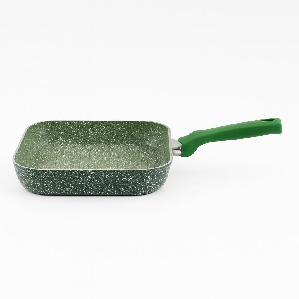Prestige Essentials Square Non-Stick Grill Pan 28 cm The Prestige Essentials Square Grill Pan is perfect for healthy grilling at home. Designed with a durable non-stick coating, it allows low-oil cooking while delivering even heat and perfect grill marks. The sturdy, heat-resistant handle ensures safe and comfortable use.