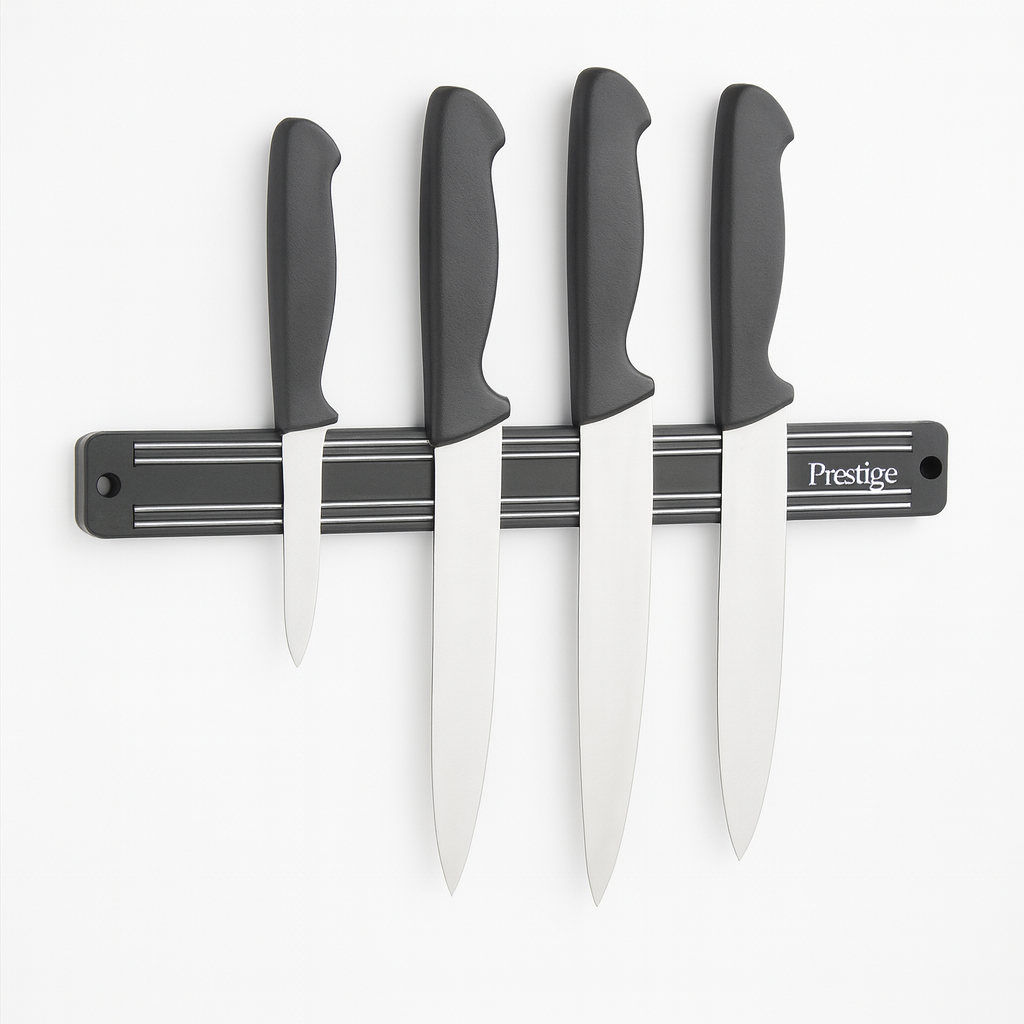 Prestige Magnetic Knife Holder – Wall-Mounted Knife Organizer The Prestige Magnetic Knife Holder keeps your kitchen knives organized, accessible, and safe. Its strong magnetic strip securely holds knives while saving counter space and adding a clean, modern look to your kitchen.