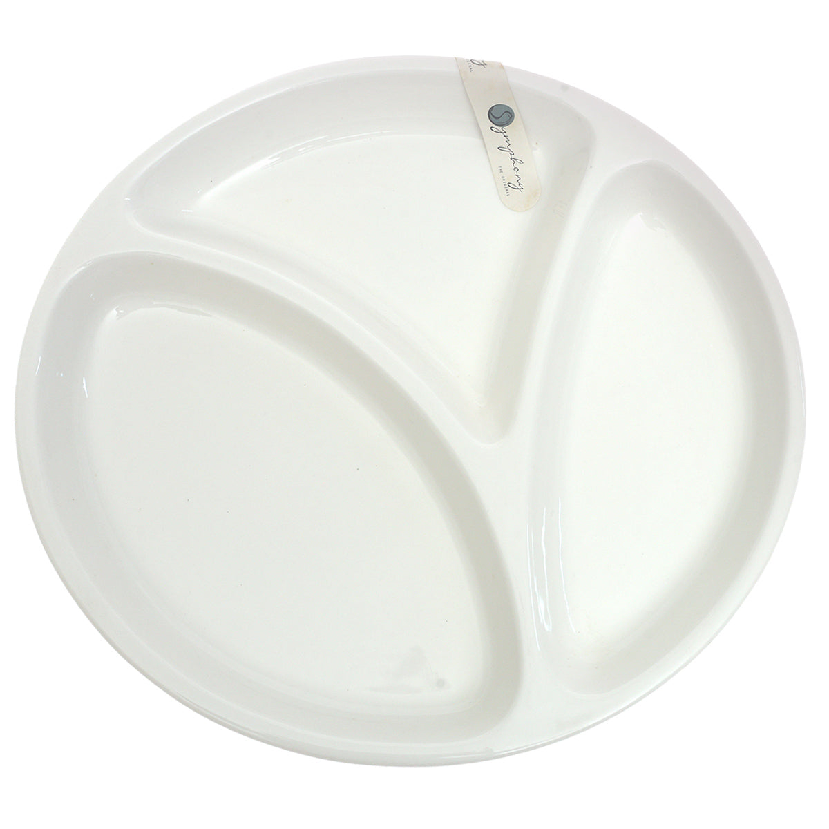 Enhance your dining presentation with the Round 3 Division Symphony Plate, designed for stylish and practical serving. Featuring smooth, flowing dividers and a clean white finish, this plate allows you to serve multiple items neatly while maintaining an elegant table setting. Its modern round shape makes it ideal for everyday meals as well as entertaining guests.