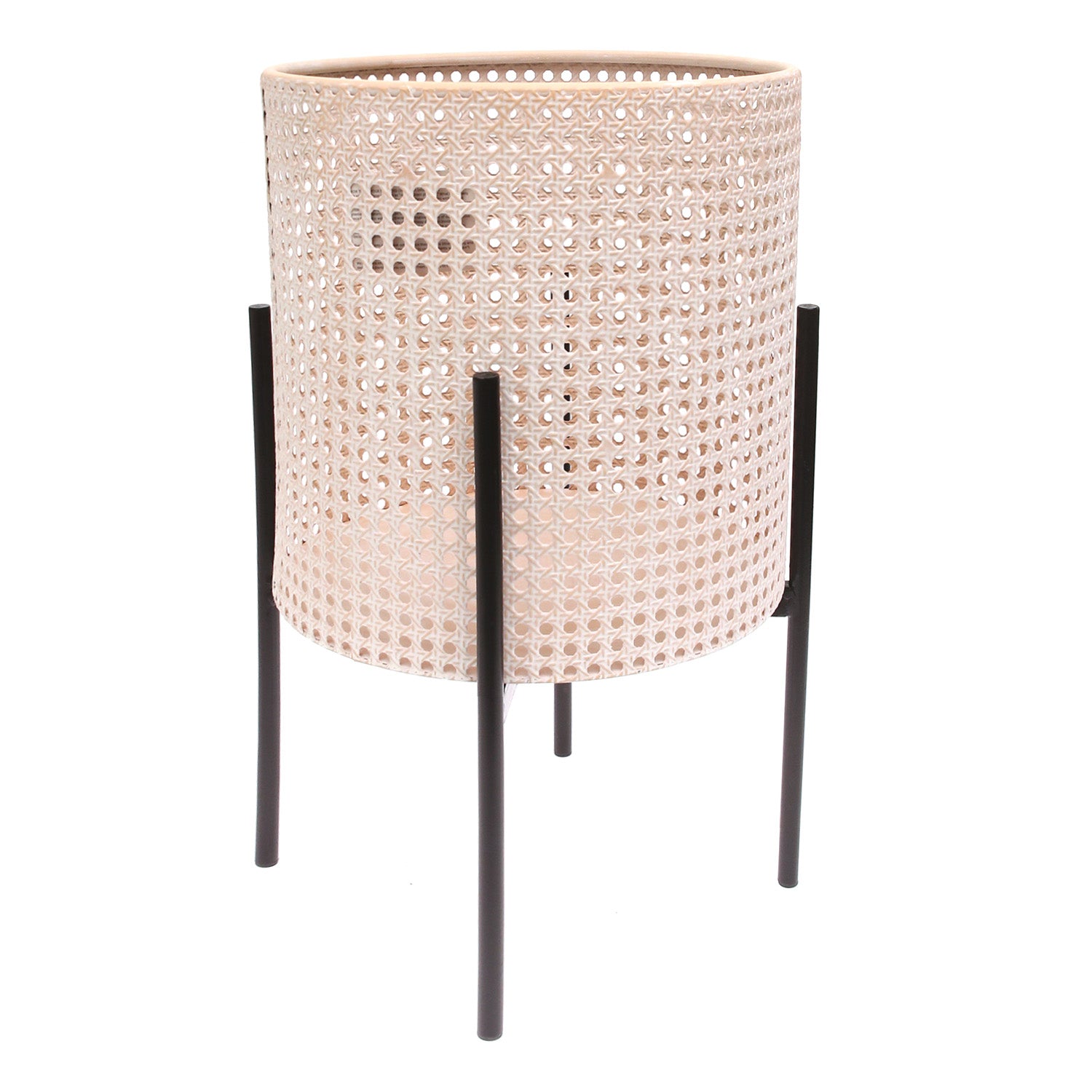 Introduce warm, natural texture to your space with the Round Hole Planter White & Beige L 9AB2611J2. Designed with a cane-inspired open-weave pattern, this stylish planter offers an airy, organic look that complements boho, Scandinavian, tropical, and modern interiors. The soft beige-and-white finish brings a light, neutral tone, while the sleek black stand adds height and a contemporary contrast—perfect for showcasing indoor plants with elegance.