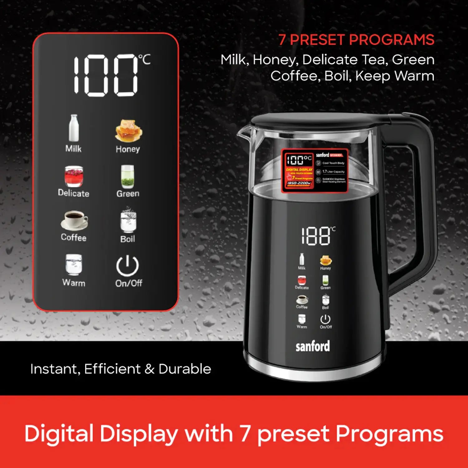 The Sanford Electric Kettle SF3361EK combines modern design with smart functionality to deliver precise and convenient boiling for everyday needs. With a generous 1.7-liter capacity, it is ideal for preparing tea, coffee, milk, instant noodles, and other hot beverages or cooking requirements.