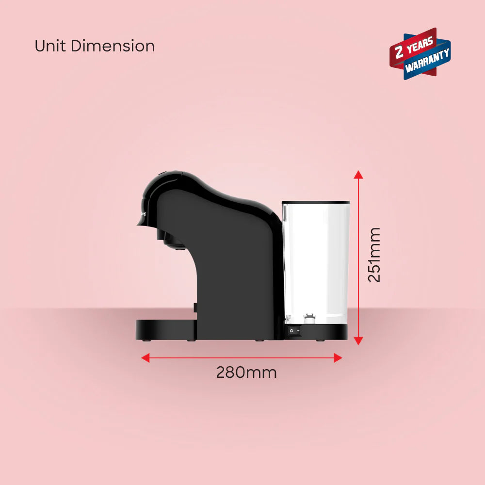 Actual product colour, packaging and dimensions may vary slightly due to regional production batches and monitor display differences. Capsule compatibility may depend on capsule brand and region; always verify compatibility before purchase. This appliance is intended for domestic use and must be used according to manufacturer’s instructions. The seller is not liable for damage caused by misuse, unauthorized modification or use with non-specified consumables.