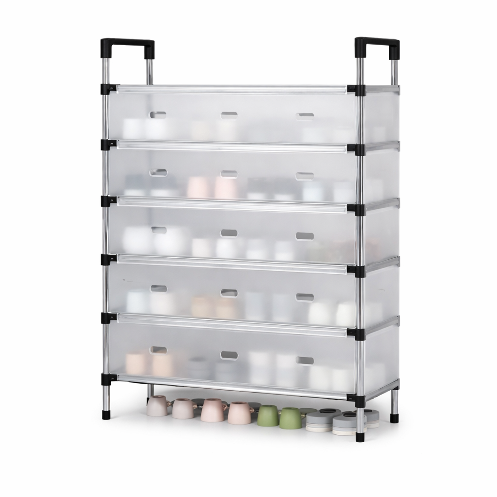 Shoe Organizer – Stackable Shoe Storage Rack The Shoe Organizer is a smart, space-saving solution for neatly storing and displaying footwear. Designed with a sturdy frame and transparent panels, it keeps shoes dust-free while allowing easy visibility and access.