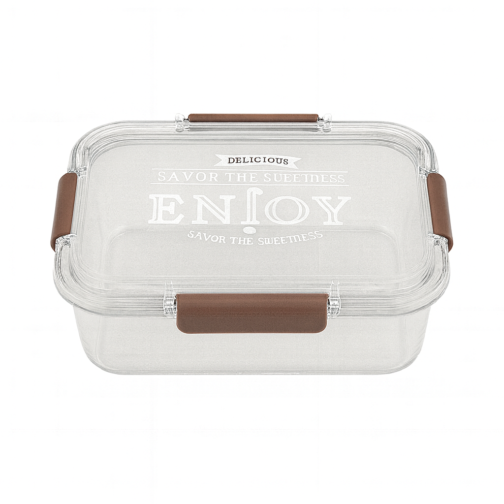 Carry your meals in style with the Stainless Steel “ENJOY” Lunch Box, designed for convenience, freshness, and everyday durability. Featuring a polished stainless-steel compartment tray inside and a sturdy outer shell with a clear lid, this lunch box keeps food neatly separated and visually appealing. The “ENJOY” printed lid adds a modern touch, while the secure side-lock clips prevent spills, making it ideal for school, office, travel, or meal prep.