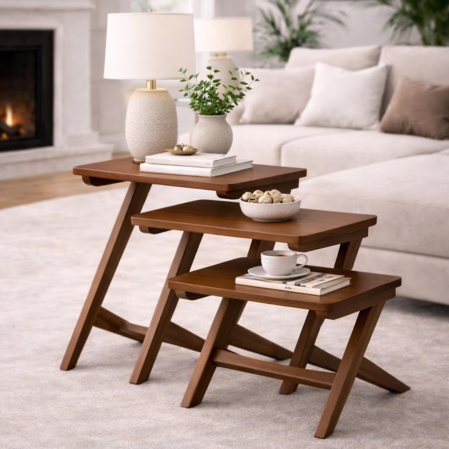 Enhance your living space with the smart versatility and refined design of the Timberland Nest of Table Set. Crafted with a rich wooden finish and clean, contemporary lines, this set features three beautifully proportioned tables that nest seamlessly together. The warm timber tone and sturdy construction bring a sense of natural elegance while maintaining a modern, space-saving aesthetic.