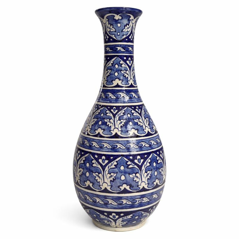 Celebrate timeless craftsmanship with the Surahi Vase (Assorted Design). Handcrafted in traditional blue pottery style, this elegant piece features intricate floral and geometric motifs painted in rich cobalt blue on a creamy white base. The classic surahi silhouette—slender neck with a gracefully rounded body—adds heritage charm to living rooms, entryways, consoles, or dining spaces. Beautiful on its own or styled with dried branches and florals, it’s a statement of artisanal elegance.