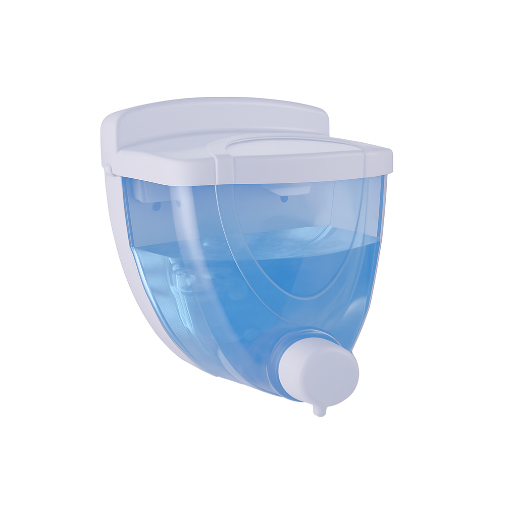 Elegant and practical white liquid soap dispenser with a clear body for easy refill monitoring. Ideal for dispensing soap, shampoo, or sanitizer in bathrooms, kitchens, or offices. Features a smooth push nozzle and easy wall-mount design for everyday convenience.